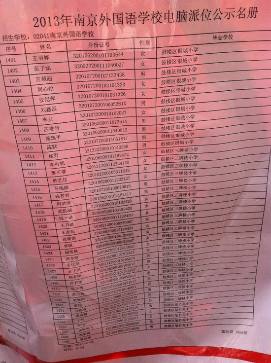 2013年南京外国语学校电脑派位公示名单---原鼓楼区(14)