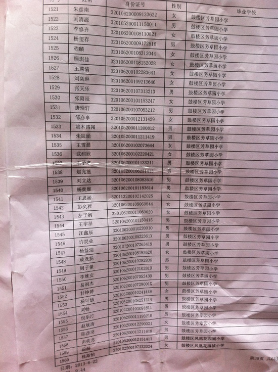 2013年南京外国语学校电脑派位公示名单---原鼓楼区(17)