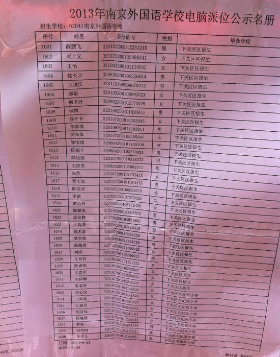 2013年南京外国语学校电脑派位公示名单---原下关区 南京奥数网整理 2013-06-22 15:51:28 南京奥数网:2013年南京外国语学校电脑派位公示名单---原下关区。 首页 上一页 下一页 尾页