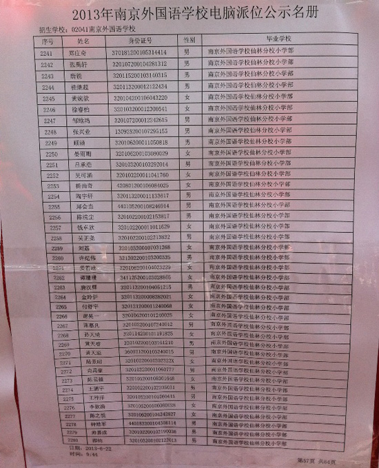 2013年南京外国语学校电脑派位公示名单---栖霞区(6)