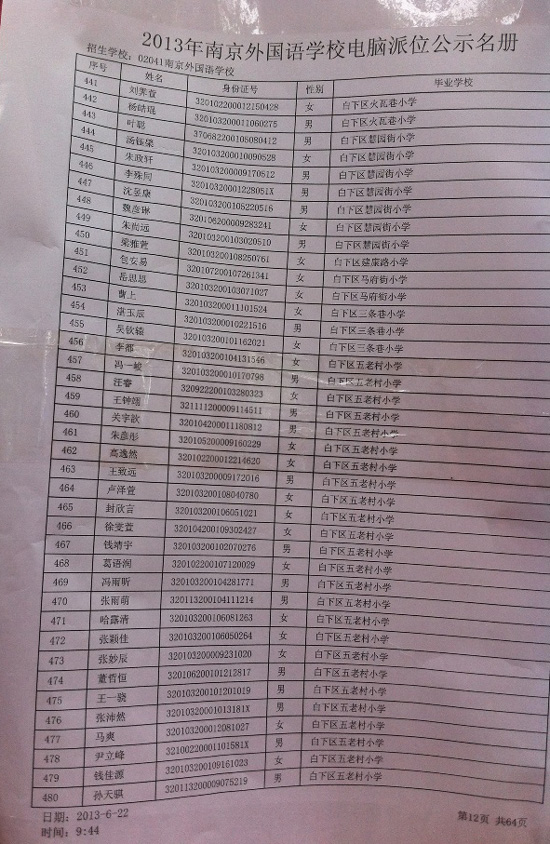 2013年南京外国语学校电脑派位公示名单---原白下区(4)