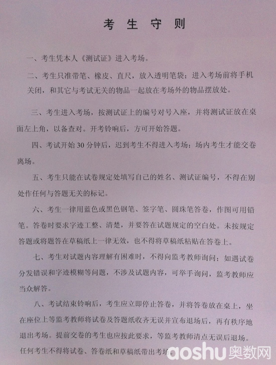 2013年南外小升初英语能力测试考场安排及考生守则(3) 南京奥数网原创 2013-06-29 19:08:29 【相关阅读】 2013年南京外国语学校摇号公示名单(各区) 2013年南京外国语学校小升初英语能力测试注意事项 2013年南外报名电脑派位共3324人 创近四年最低 2013年南外摇号现场花絮 “南外梦”牵动众人心弦 南外英语综合能力测试试题及答案汇总(2004年-2012年) 首页 上一页 下一页 尾页