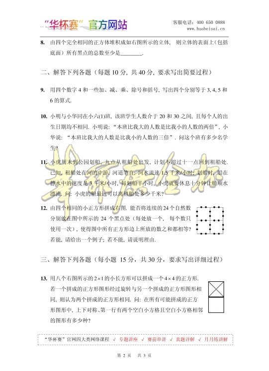 第十八届“华杯赛”小学高年级组决赛试题A(2)