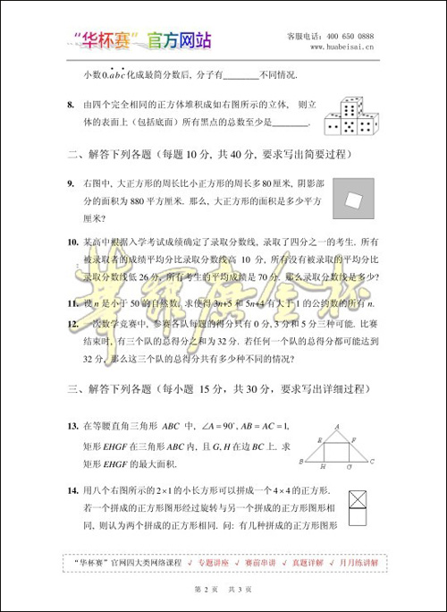 第十八届“华杯赛”小学高年级组决赛试题C(2)