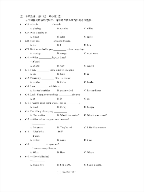 第十五届新课标英语等级考试小学一级试题(全)(3)
