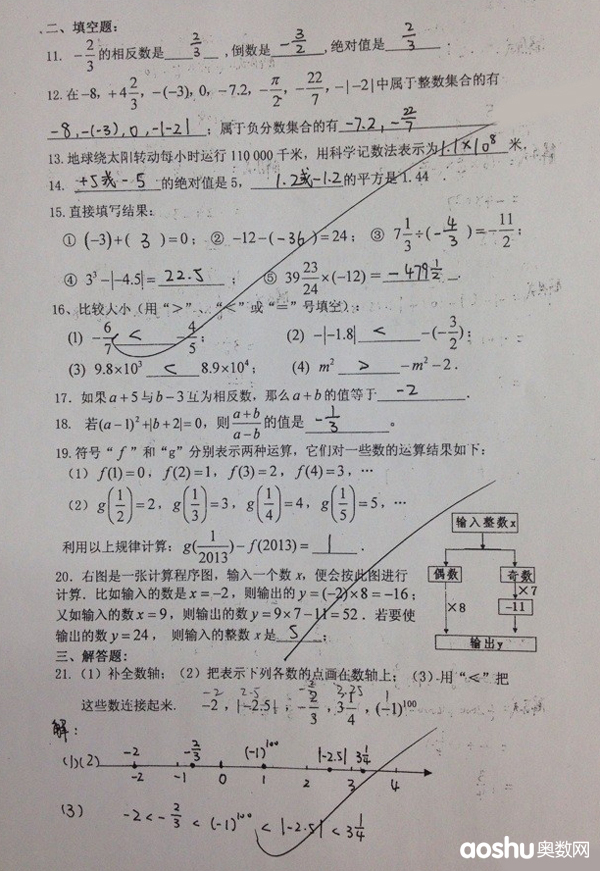 2013年南外初一(上)月考数学试卷(附答案)(2)