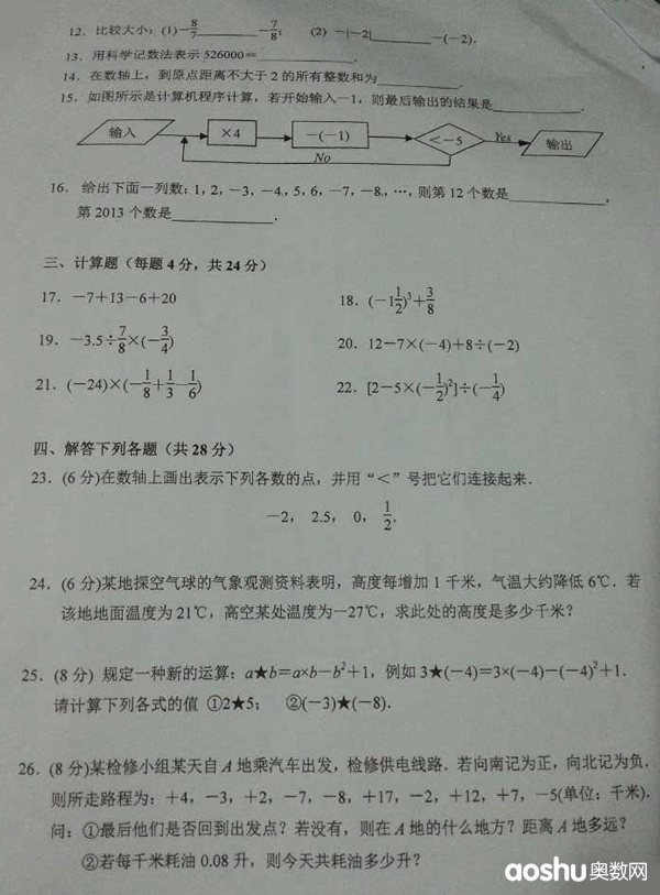 2013年南京一中初一(上)月考数学试卷(附答案)(2)