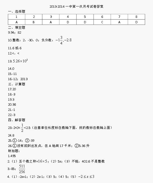 2013年南京一中初一(上)月考数学试卷(附答案)(5)