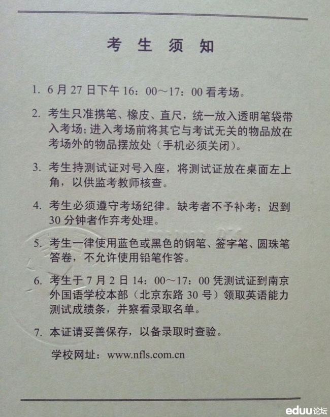 【查看原帖并参与讨论:特别提醒:南外测试必备物件及四不准】