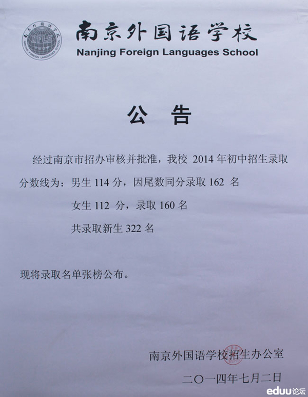 2014年南外小升初录取名单(共322人) 家长帮社区 2014-07-02 16:34:21 南京奥数网 新鲜出炉的名单,2014年南京外国语学校小升初录取工作结束,共录取新生322名。 【查看原帖参与更多讨论】 首页 上一页 下一页 尾页