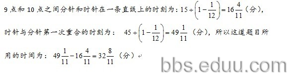 4、在9点与10点之间的什么时刻,分针与时针在一条直线上?