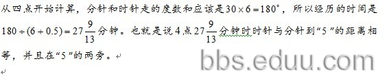 7、钟面上4点几分时,时针与分针到“5”的距离相等,并且在“5”的两旁?