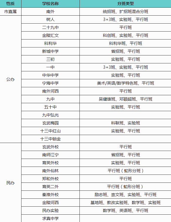 二梯队:科利华(玄武区公办)、玄外(玄武区民办)、二十九中(鼓楼区公办)、金陵汇文(鼓楼区公办)、新城(建邺区公办)、三初(原白下现秦淮公办)、郑外(原白下现秦淮民办)、育英二外(大厂民办)、金陵河西(建邺区民办)