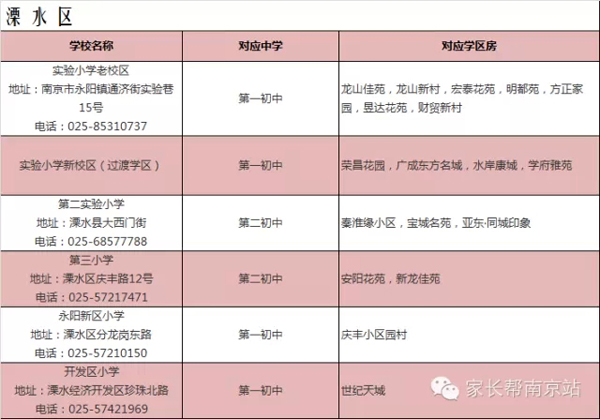 2015最新南京十一区学区划分之溧水区 家长帮资讯 2015-04-09 14:25:46 南京小升初择校竞争激烈,学区房也是家长们的重要手段之一。下面整理2015年南京全市十一区学区划分,希望对大家有所帮助。 点击查看:鼓楼区丨玄武区丨建邺区丨秦淮区丨栖霞区丨雨花区丨江宁区丨浦口区丨高淳区丨六合区丨溧水区