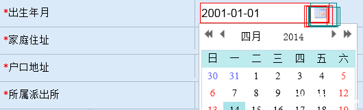 2.“出生日期”可以直接输入,如输入:2001-01-01,也可点击日历表选择;后面的日期类型数据也可以此方式填写。