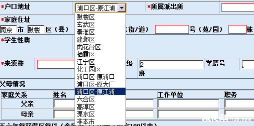 3.“户口地址”和“所属派出所”须与户口簿信息一致;注意“户口地址”选择:凡南京市属户口请选择相应区,南京市以外地区均选择“非本市”;“家庭住址”需填写完整,如:“江苏省南京市鼓楼区渡江路18号1栋1单元305室”(其中“栋、单元、室“只能填数字),请根据“家庭住址”提示,逐项填写,没有的项目可以不填。