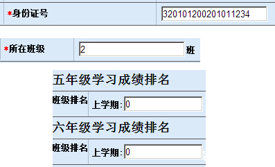 5. “身份证号”限制18位数字或英文字母;电话号码限制12位数字(可以填写固话或手机);所在班级限制为2位数字;下面栏目的所有“排名”和“成绩”均须数字填写;其他限制请参阅表格提示。注意:不规范的数据将被自动清除。