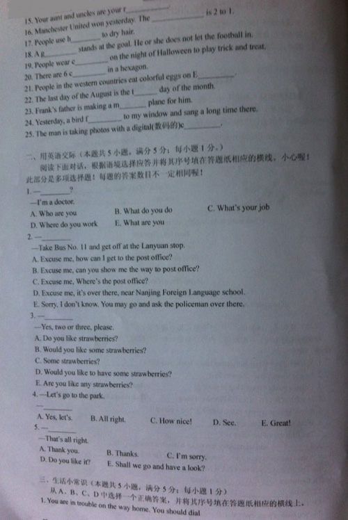 2005年南京外国语小升初英语能力测试试题(2)