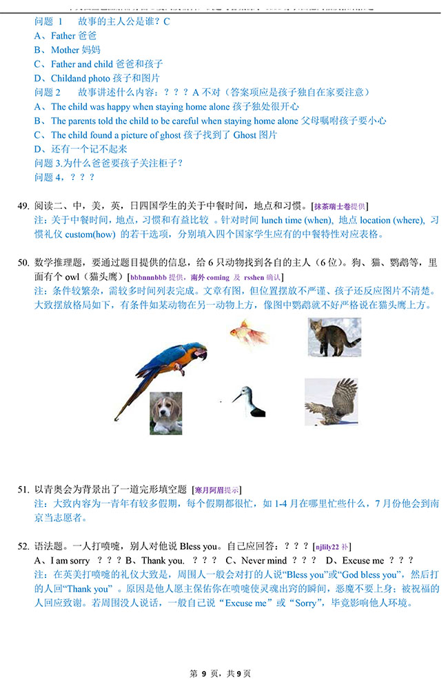 2014年南京外国语小升初英语能力测试试题解析(9)