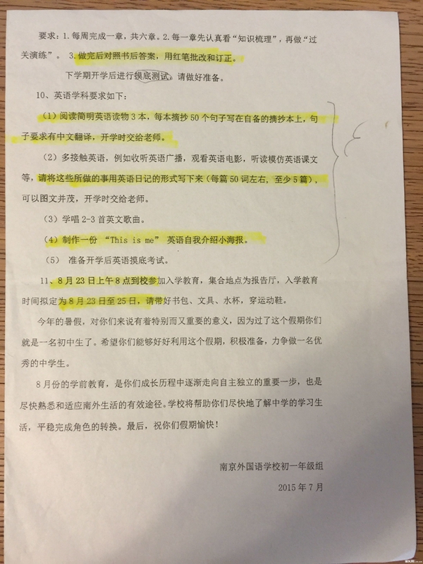 南外给2015年初一新生的一封信(附暑假作业)(2)