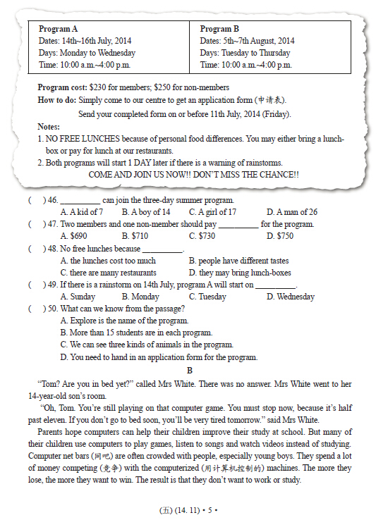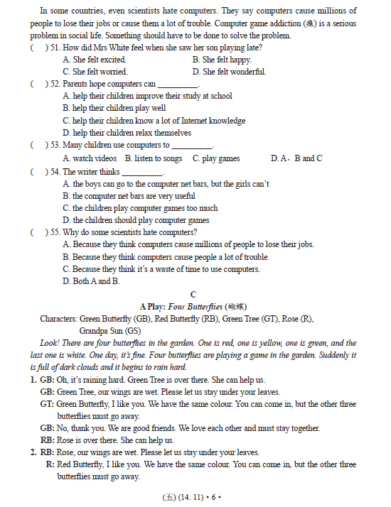 第二十届新课标英语EGT初中五级试题答案(3)