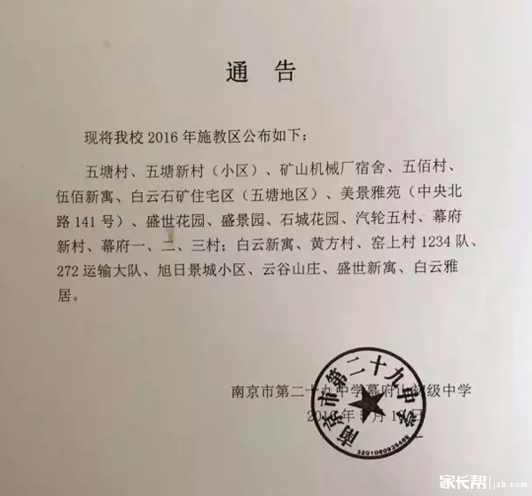 2016年南京市第二十九中学幕府山初级中学小升初招生施教区范围