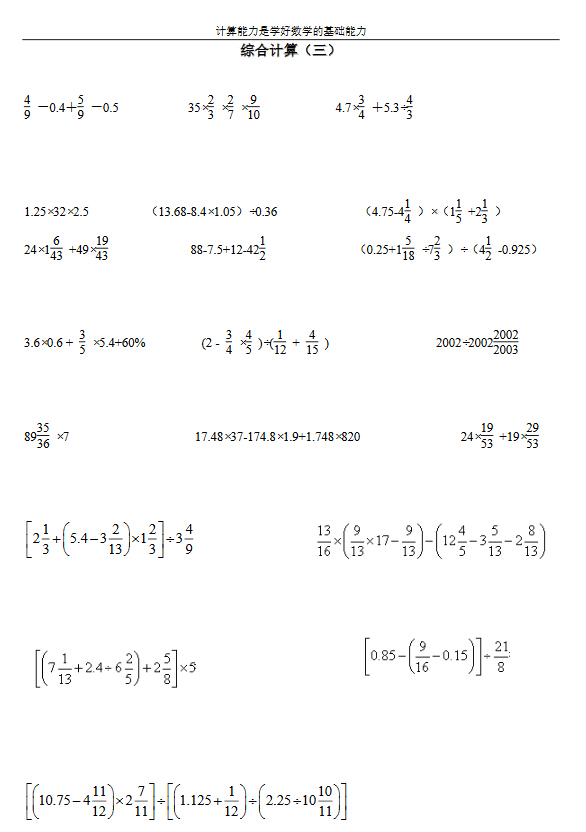 2016级南京科利华中学初一新生数学计算题作业(7)