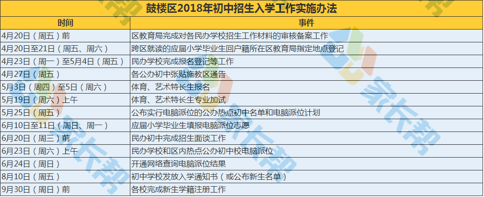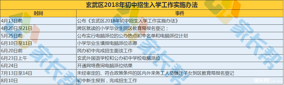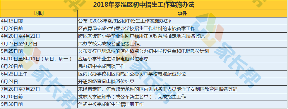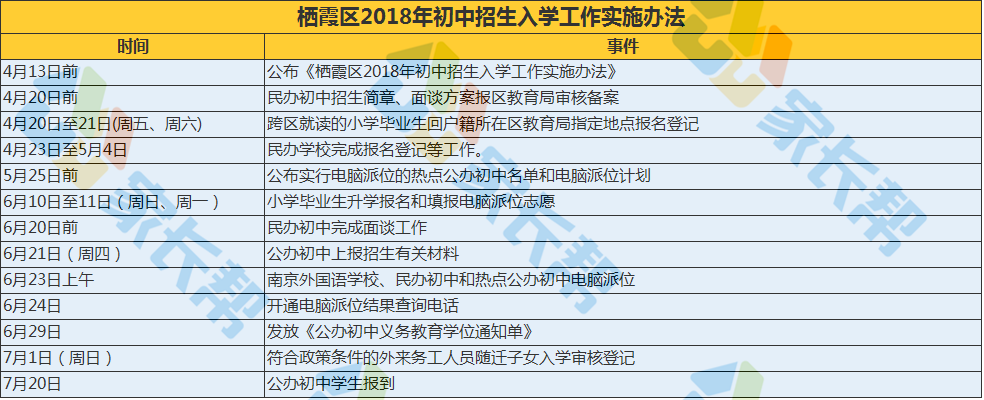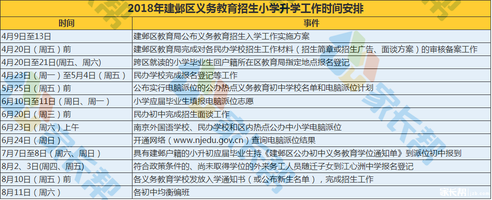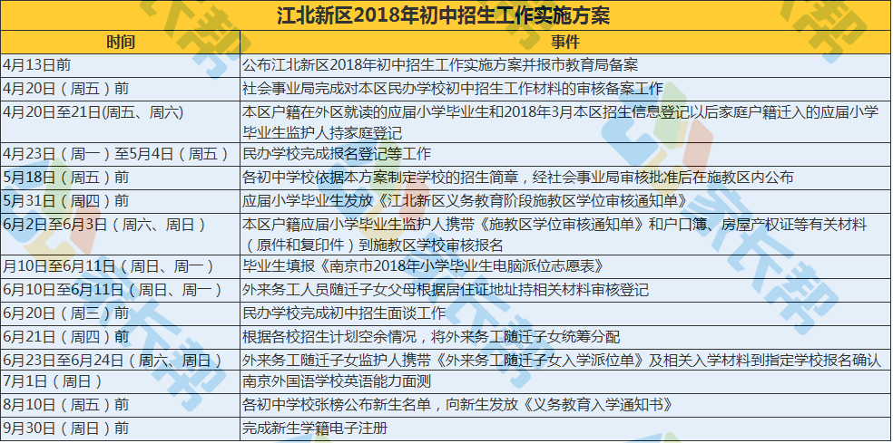 南京市2018年义务教育阶段招生入学工作指导意见时间轴