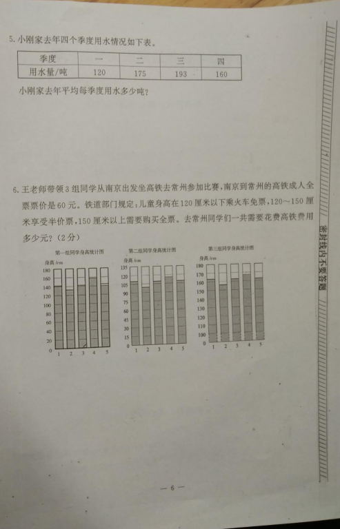 2019年南京市江宁区小学四年级数学期末卷(图片版)(6)
