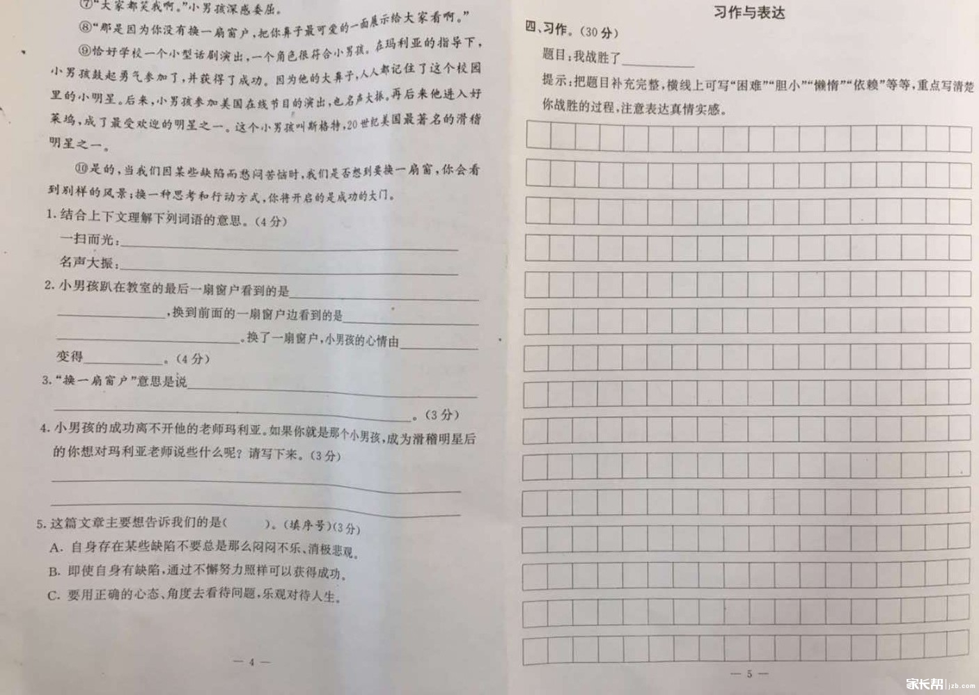 2019年南京市江宁区小学四年级语文期末卷(图片版)(2)