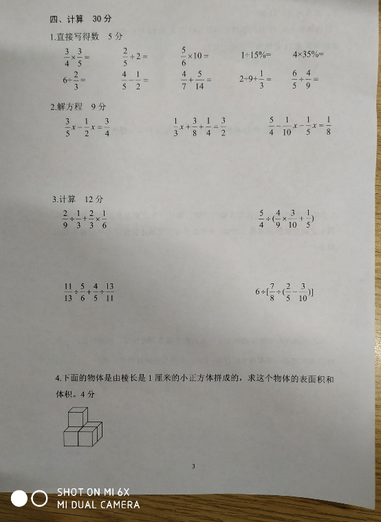 2019年南京市栖霞区小学六年级数学期末卷(图片版)(3)