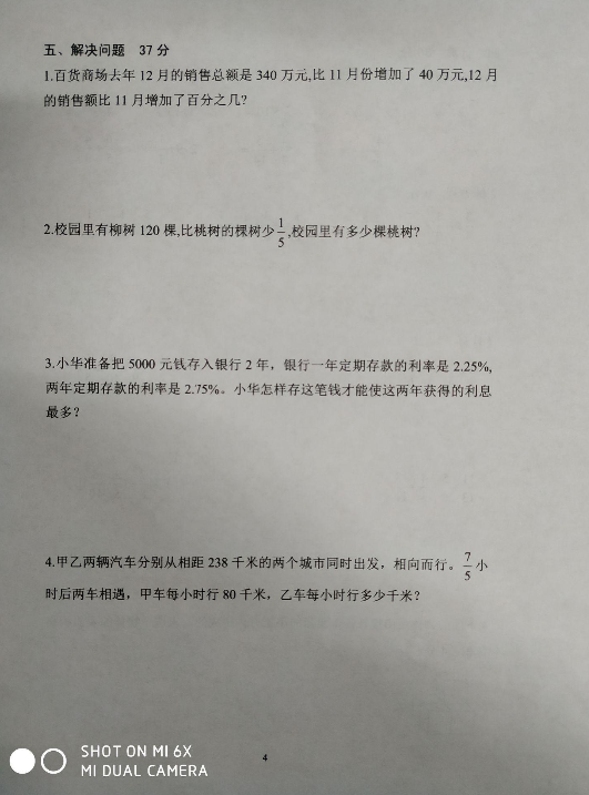 2019年南京市栖霞区小学六年级数学期末卷(图片版)(4)