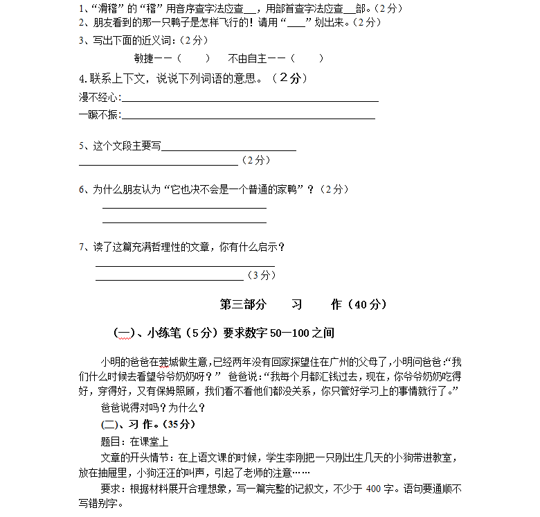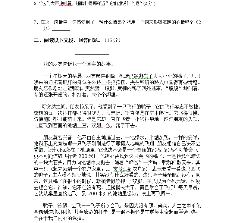 小升初分班考试语文模拟试题(六)