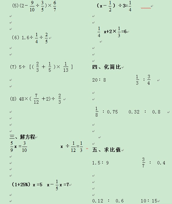 六年级计算练习题(二) 青岛奥数网整理 2011-12-29 16:03:40 编辑推荐:》》》 青岛市教育局举办科技辅导教师培训 小升初语文归类复习整合篇(免费下载) 最新调查 200名孩子8成想当班干部 2012小升初 六年级数学应用题最后一篇 2012小升初 英语背诵110篇之第六篇 备战小升初 家长管理孩子“三大忌”