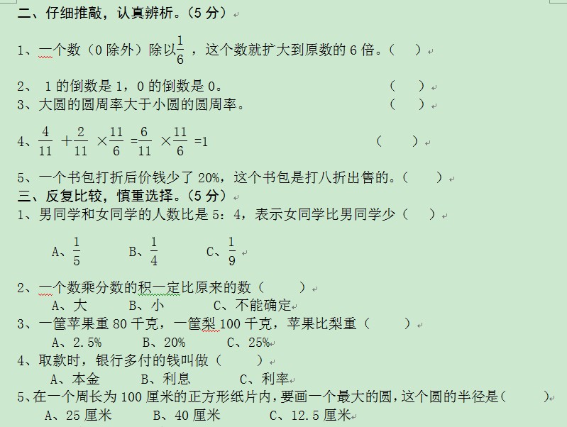 六年级数学期末考试卷(二) 青岛奥数网整理 2011-12-29 16:13:31 编辑推荐:》》》 小升初分班考试数学测试(二) 小升初分班考试数学测试(一) 六年级上册圆的面积试题(一) 六年级上册圆的面积试题(二) 六年级英语阅读专项训练(九) 六年级英语阅读专项训练(八)