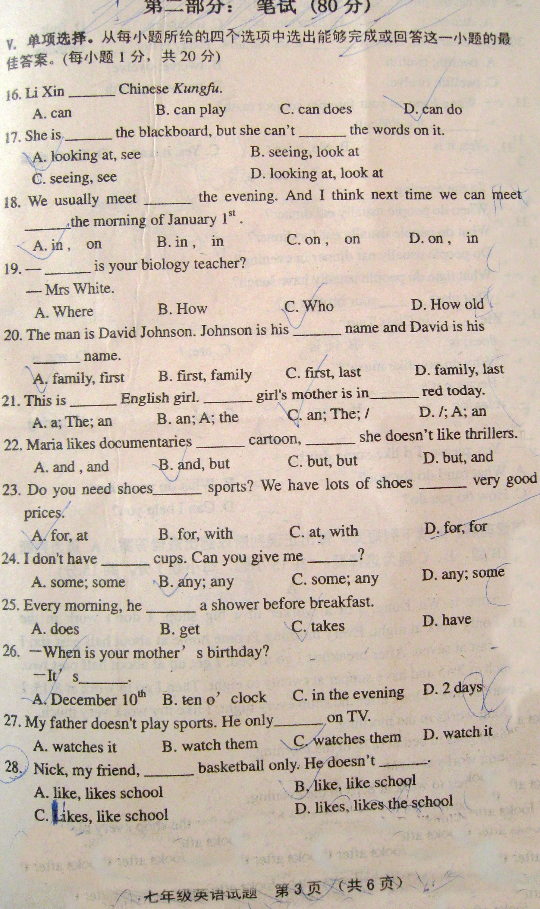 2011-2012第一学期七年级英语试题原卷(三) 青岛奥数网整理 2012-01-21 10:51:11 参考答案: 2011-2012第一学期七年级英语试题答案(一) 2011-2012第一学期七年级英语试题答案(二) 2011-2012第一学期七年级英语试题答案(三) 2011-2012第一学期七年级英语试题答案(四) 2011-2012第一学期七年级英语试题答案(五) 2011-2012第一学期七年级英语试题答案(六) 编辑推荐:》》》 寒假不加量 青岛中小学明日起享4周假 小升初英语语法之介词用法口诀 天水路小学将拆新建 398名学生就近分流 奥数专题知识点之抽屉原则解析 小升初备考 巧用探索与归纳知识点 寒假作业太多 孩子该如何提高学习效率