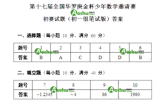 2012年3月17日,第十七届“华罗庚金杯”少年数学邀请赛青岛赛区已经完美落幕!各位考生是否想要知道自己的考试成绩呢?下面就是青岛奥数网为大家整理的第十七届华杯赛笔试初赛初一组试卷答案,大家可以估一下分哦!