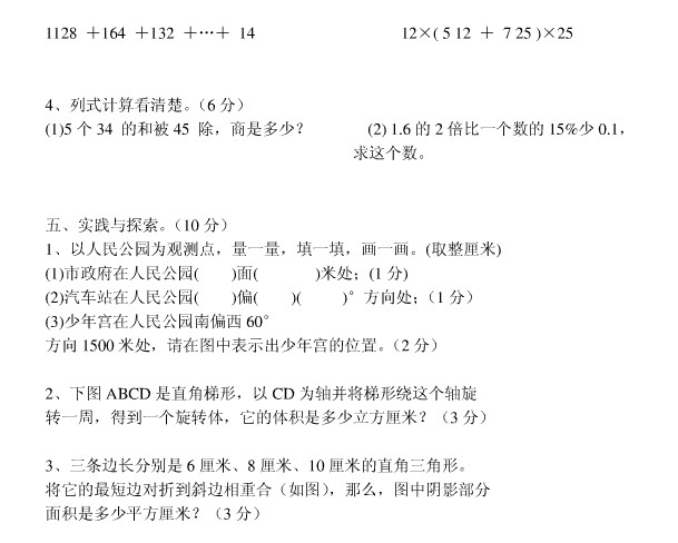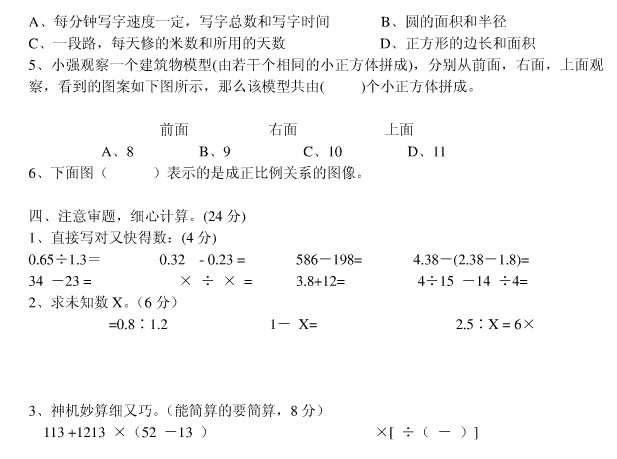 青岛小升初 苏教版小学数学六年级下册期中测试卷(2)
