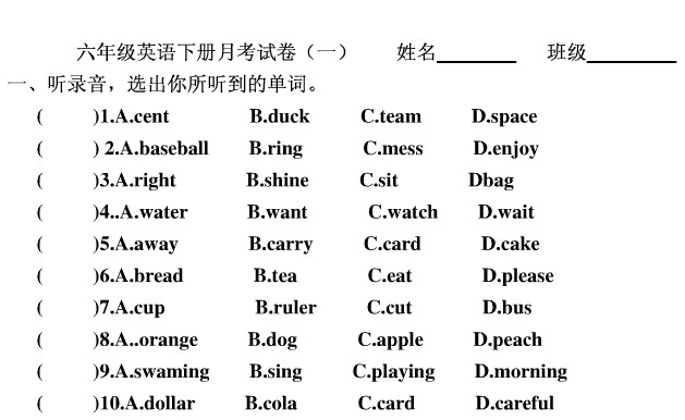 2012青岛小升初 外研社版英语六年级下册月考试题