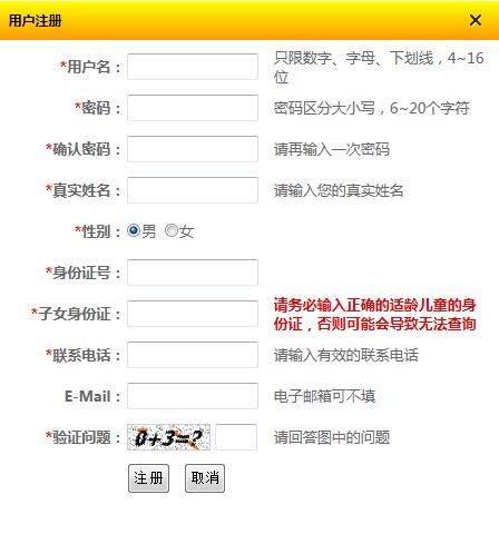 二、在进行查询之前,大家一定要先登录。如果尚未注册,点击左侧“注册”,在弹出框中填入所需信息即可进行注册。