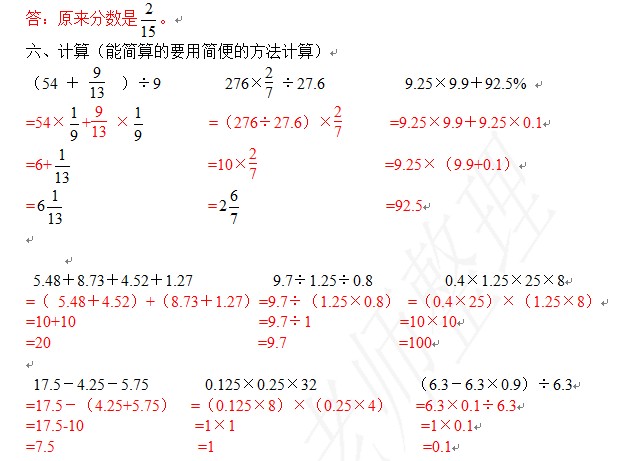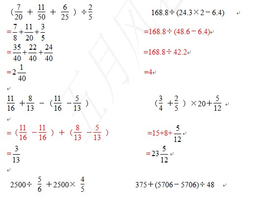 2012青岛小升初 数的运算练习题答案(2)