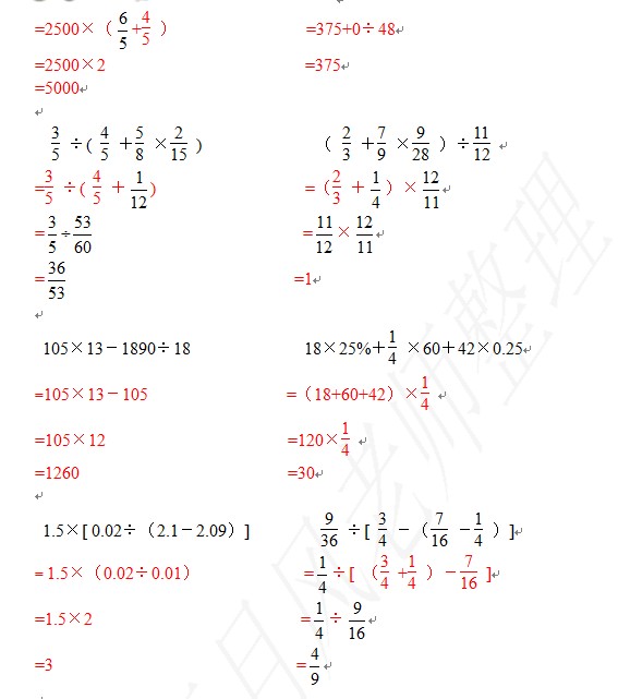 2012青岛小升初 数的运算练习题答案(3)