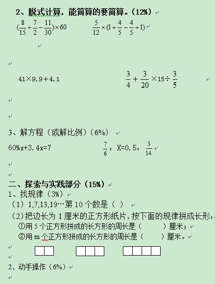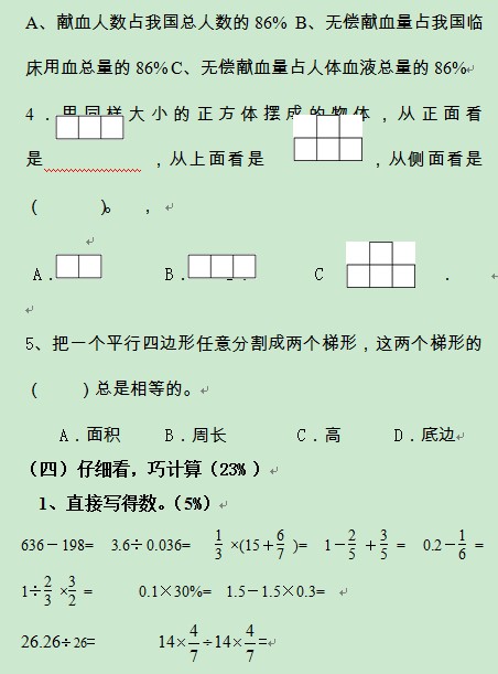 2011-2012学年度青岛福林小学六年级下册数学试卷(3)