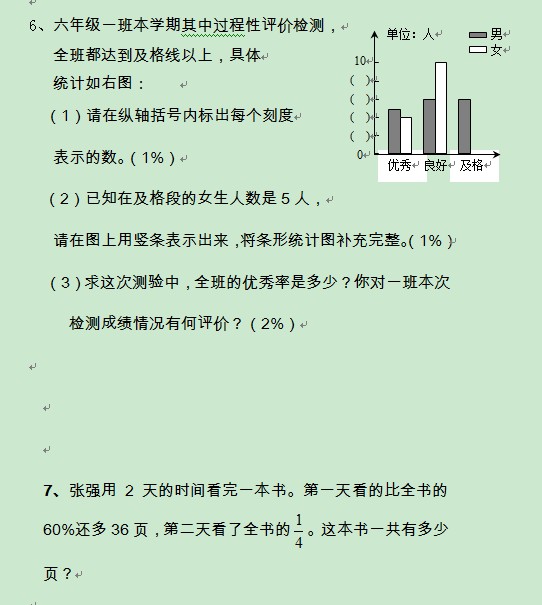 2011-2012学年度青岛福林小学六年级下册数学试卷(5)
