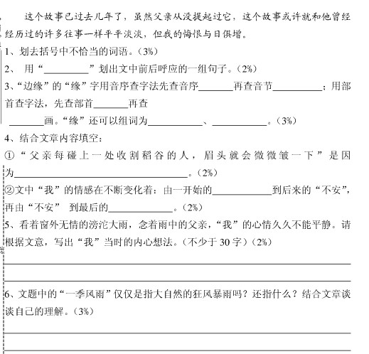 2008年青岛市市南区小学毕业考试语文模拟题(5)