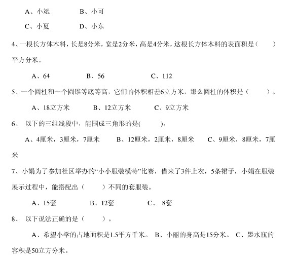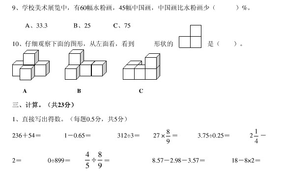 青岛小升初 青岛小学毕业考试数学试题(2)