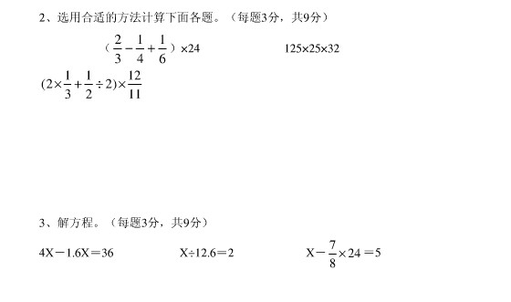 青岛小升初 青岛小学毕业考试数学试题(3)