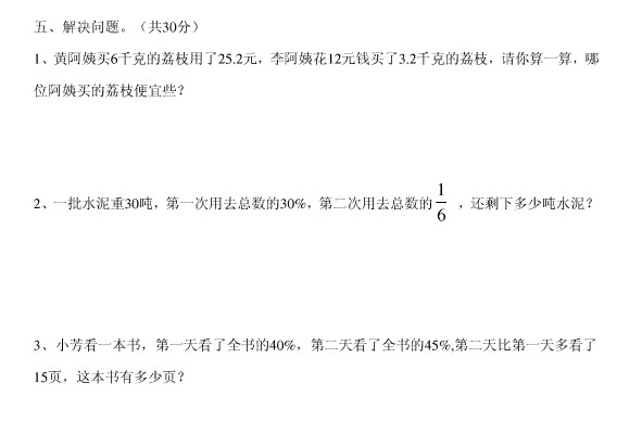 青岛小升初 青岛小学毕业考试数学试题(4)