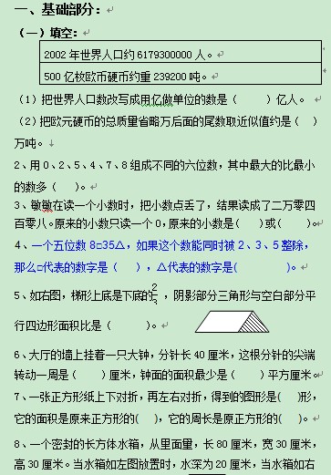 青岛市太平路小学2011-2012学年度第二学期六年级数学精品试卷