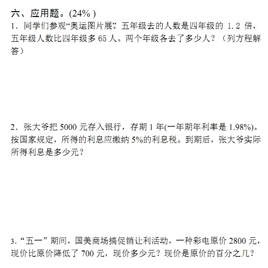 青岛德县路小学六年级下册数学综合复习卷五(4)